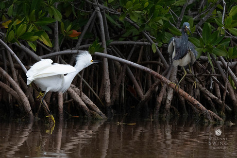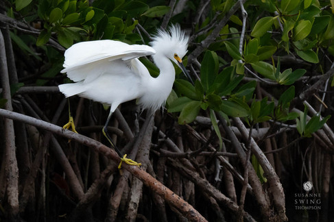 We were driving down the Overseas Highway in the Florida Keys, Jay at the wheel and I looking out the window. We'd crossed over bridges and passed miles of mangrove bushes and roadside marshes, barely a bird in sight. Then through another curtain of mangroves I suddenly noticed flashes of white patches through the leaves.